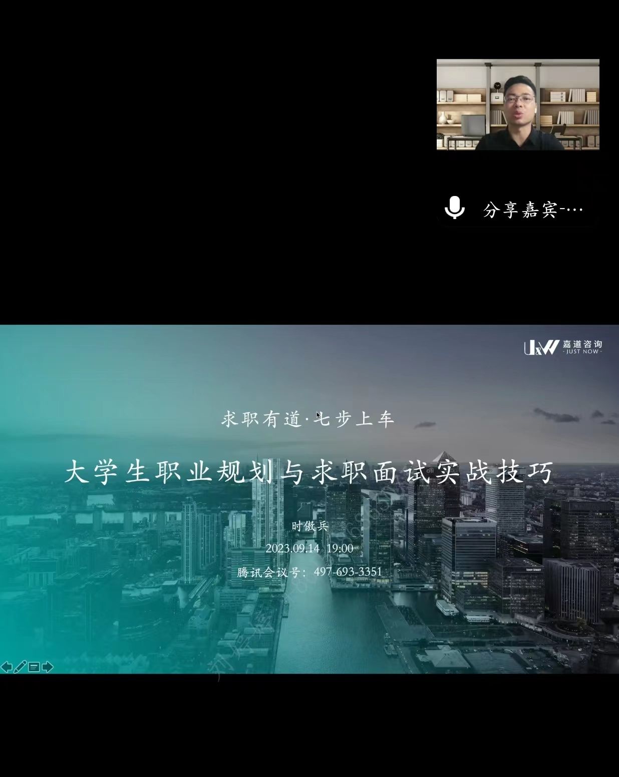 2023年9月14日19:00-21:00,美狮贵宾会员工职业发展与就业指导中心、美狮贵宾会联合邀请到国内著名就业服务专家时傲兵老师在腾讯会议开展题为《七步上车·职通未来——老员工职业规划与求职面试实战技巧》线上讲座。该讲座主要围绕老员工关心的职业规划问题展开并提供了求职面试的实战技巧。美狮贵宾会全体2024届本科、研究生毕业生以及其它学院感兴趣的同学共计90余人参加了此次讲座。