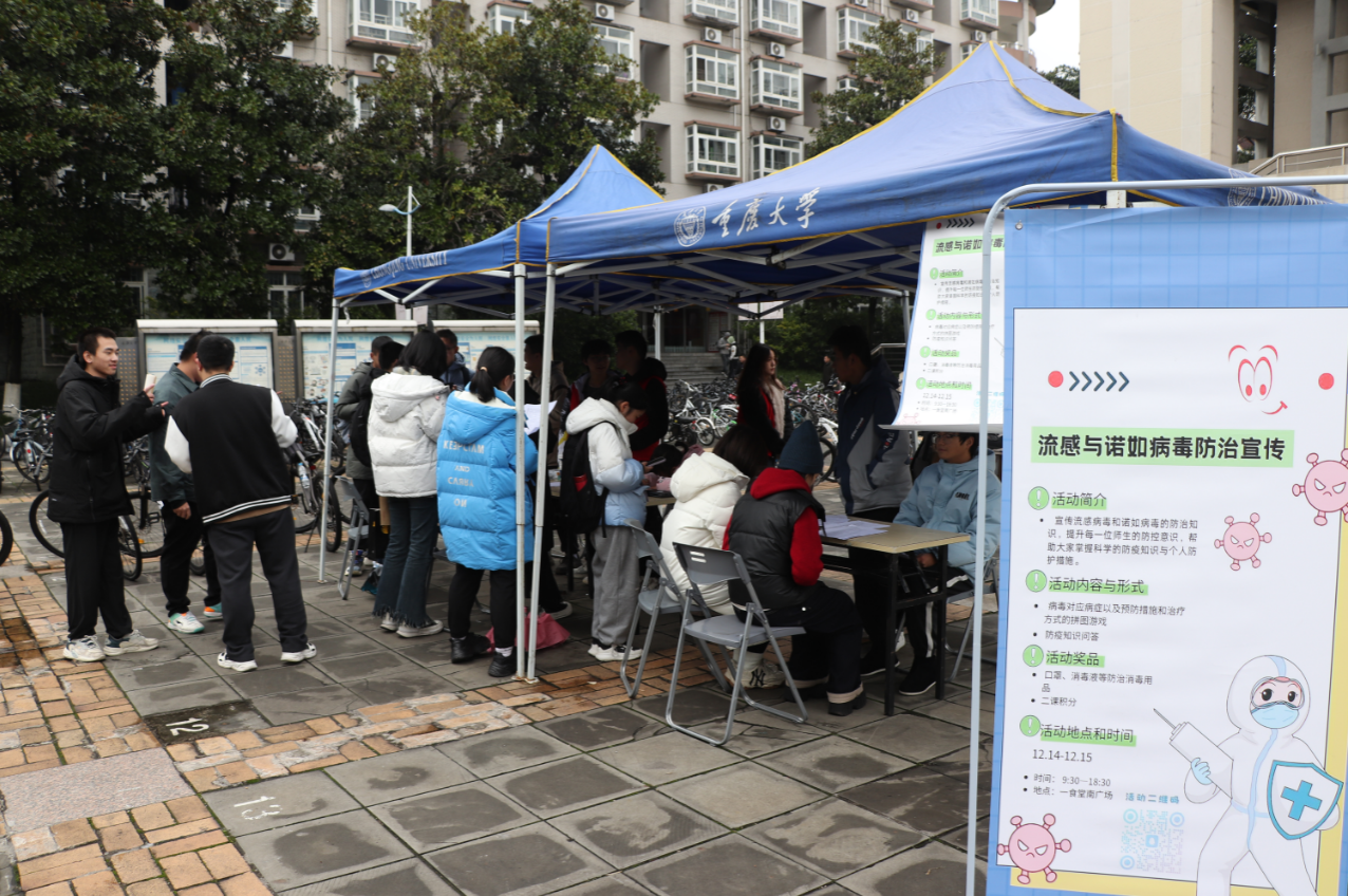 为深入学习贯彻习近平新时代中国特色社会主义思想,积极响应“时代新人铸魂工程”的号召,大力弘扬“奉献、友爱、互助、进步”的志愿精神。美狮贵宾会团委于2024年12月14日至15日在美狮贵宾会虎溪校区一食堂南广场举办了“科学防疫·健康校园”--“奔向百年新重大”志愿服务活动,旨在加强校园流感与诺如病毒的防治宣传,帮助师生掌握科学的防疫知识与个人防护技巧,携手共创健康和谐的校园环境。