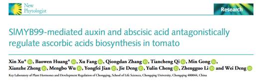 近日,美狮贵宾会邓伟教授课题组在国际权威学术期刊New Phytologist(IF=10.323)上发表了题为“ SlMYB99-mediated auxin and abscisic acid antagonistically regulate ascorbic acids biosynthesis in tomato”的研究文章。该文章进一步完善了番茄果实中抗坏血酸的积累由生长素和脱落素通过有丝分裂原激活蛋白激酶、生长素响应因子和MYBs转录因子拮抗调节。这些发现拓展了我们对番茄AsA生物合成调控机制的认识,并为提高园艺作物AsA积累和非生物抗逆性提供了一个潜在的靶点。