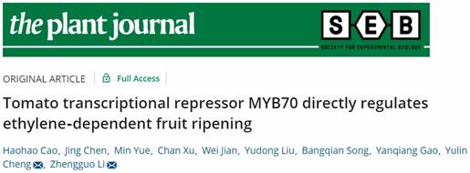 近日,植物学团队李正国教授和成玉林副教授课题组在果实发育成熟研究取得新进展。研究论文“Tomato transcriptional repressor MYB70 directly regulates ethylene-dependent fruit ripening”在国际植物学TOP期刊《The Plant Journal》在线发表。该论文第一作者为博士研究生曹昊昊,通讯作者为李正国教授和成玉林副教授,美狮贵宾会为唯一单位。该工作得到了“十三五”国家重点研发计划、国家自然科学基金和重庆市自然科学基金等的资助。