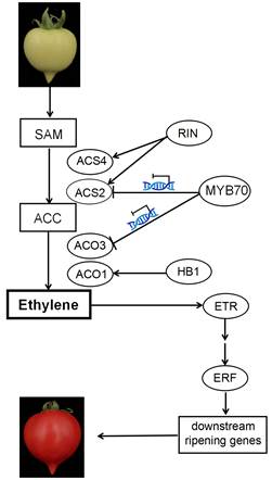 番茄转录抑制子MYB70在乙烯介导果实成熟中的作用机制